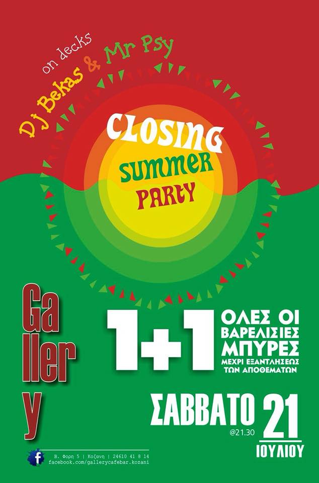 Closing summer party στο bar Gallery στην Κοζάνη, το Σάββατο 21 Ιουλίου .