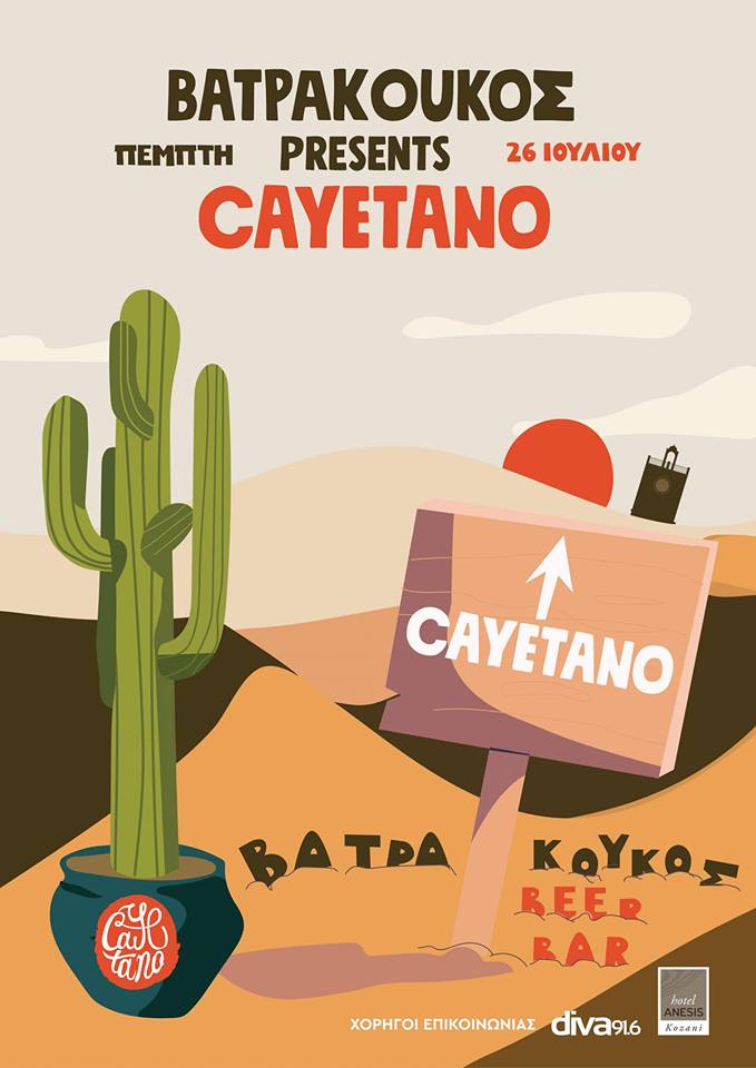 Το bar Βατρακούκος στην Κοζάνη presents Cayetano, την Πέμπτη 26 Ιουλίου .