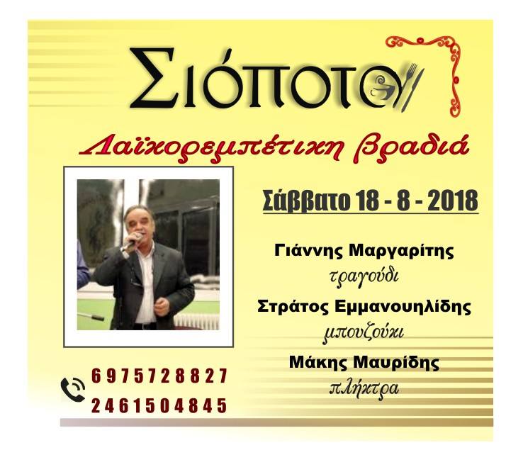 Λαϊκή ρεμπέτικη βραδιά, στο Σιόπατο στην Κοζάνη, το Σάββατο 18 Αυγούστου