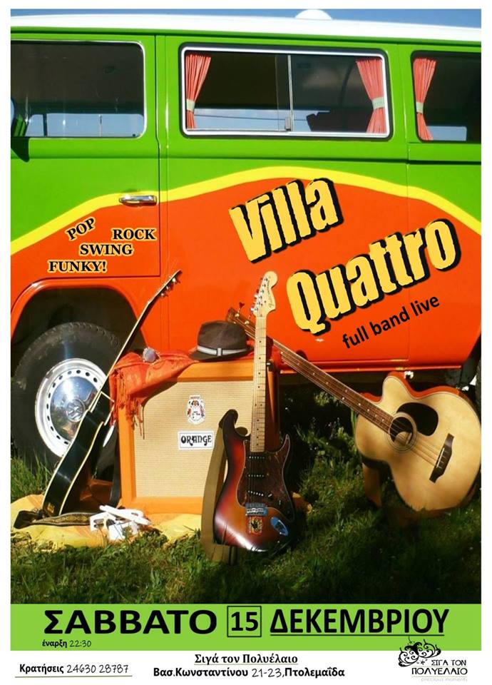 Villa Quattro full band Live στο bar “Σιγά τον Πολυέλαιο” στην Πτολεμαΐδα, το Σάββατο 15 Δεκεμβρίου .