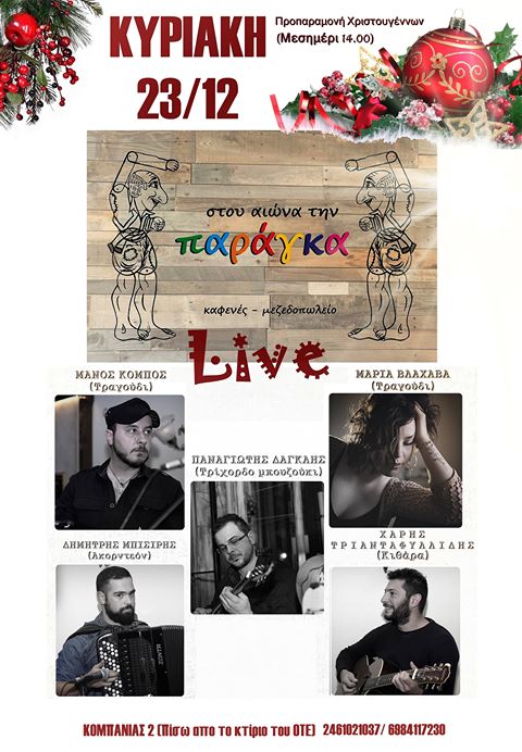 Mεσημέρι Κυριακής, 23/12, προ παραμονής Χριστουγέννων, στου Αιώνα την παράγκα, με ζωντανή μουσική