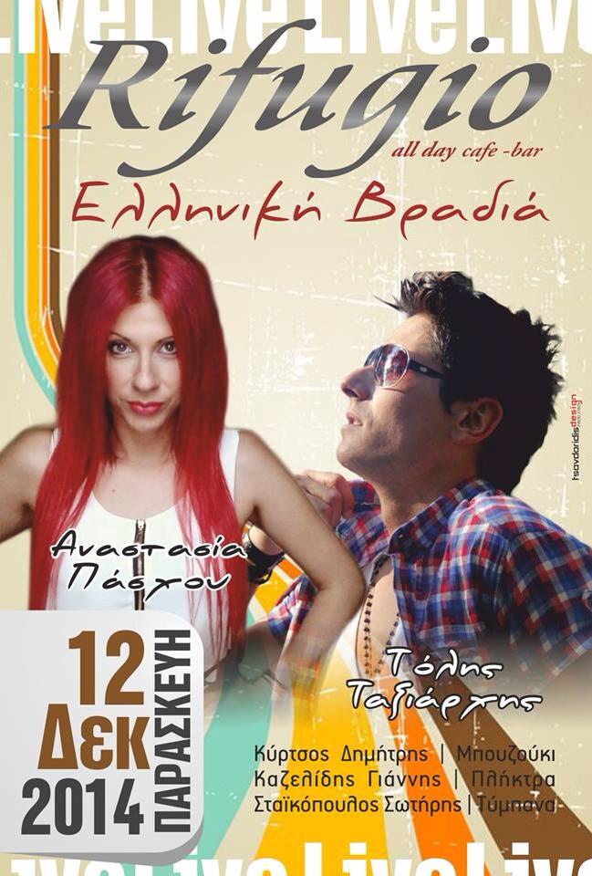 Rifugio Cafe-Bar: Ελληνική βραδιά με την Αναστασία Πάσχου και τον Τόλη Ταξιάρχη, την Παρασκευή 12 Δεκεμβρίου