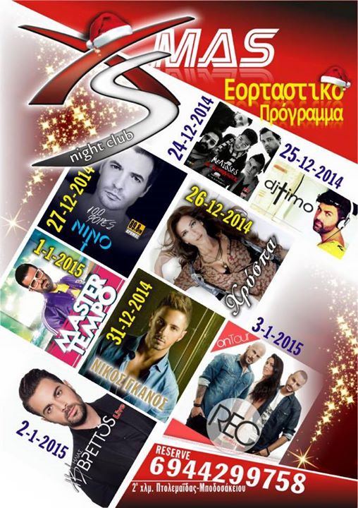 XS Night club Πτολεμαϊδα: Εορταστικές νύχτες με:”Μέλισσες-Χρύσπα-Νίνο-Ν.Γκάνος-Master Tempo- H.Βρεττός-Rec”