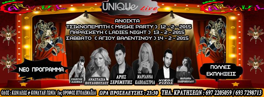 UNIQUE Live στην Πτολεμαϊδα με νέο πρόγραμμα!!